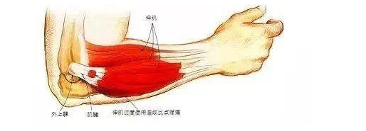说这么多可能不少人还不明白什么是网球肘,这个问题主要是由于前臂伸肌群损伤,导致拎东西肘关节痛,重者可出现前臂和手的疼痛、麻木,肘关节伸不直,夜间症状较重!